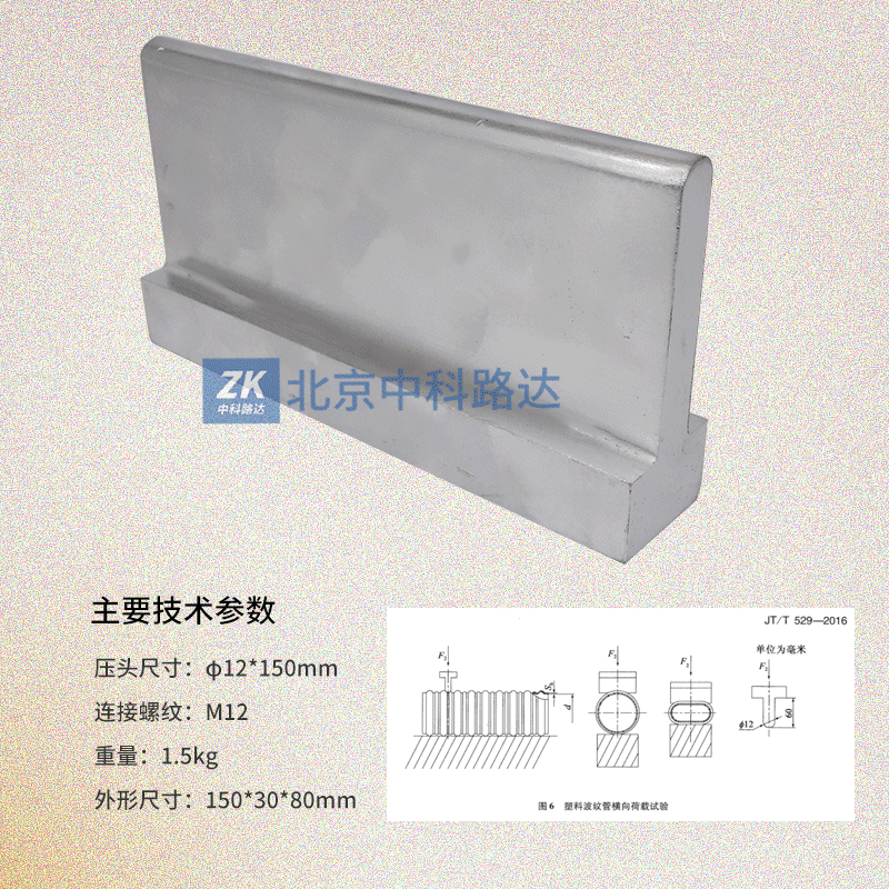 本產品符合JT/T529-2016《預應力混凝土橋梁用塑料波紋管》的規定要求,用于塑料波紋管橫向荷載試驗。