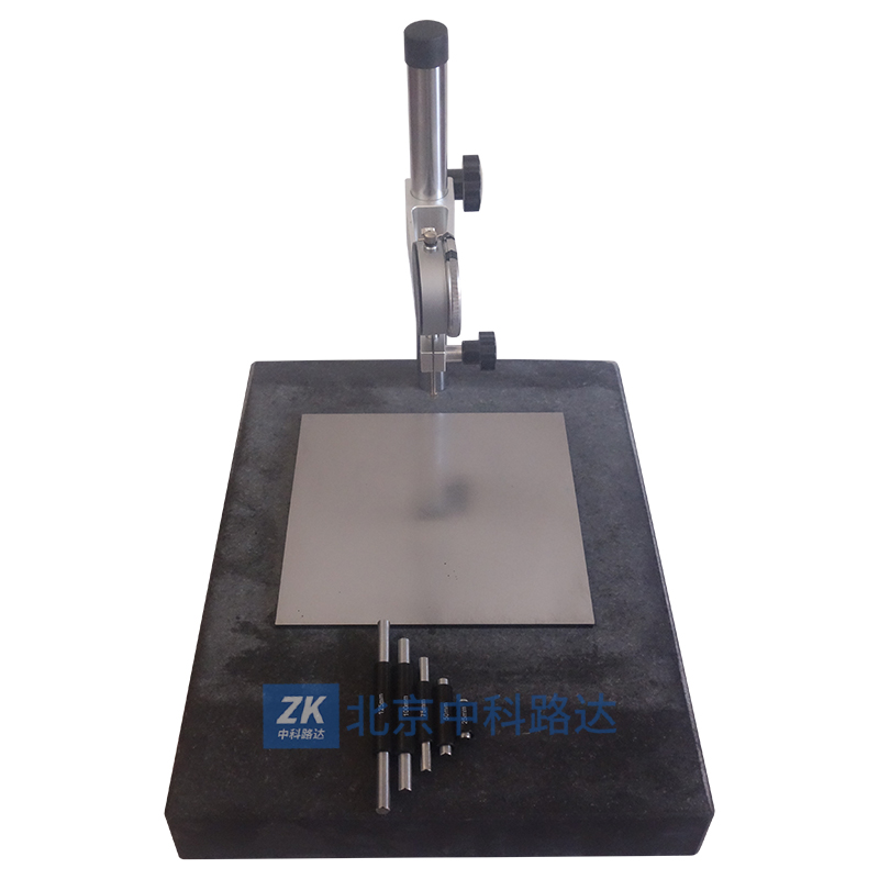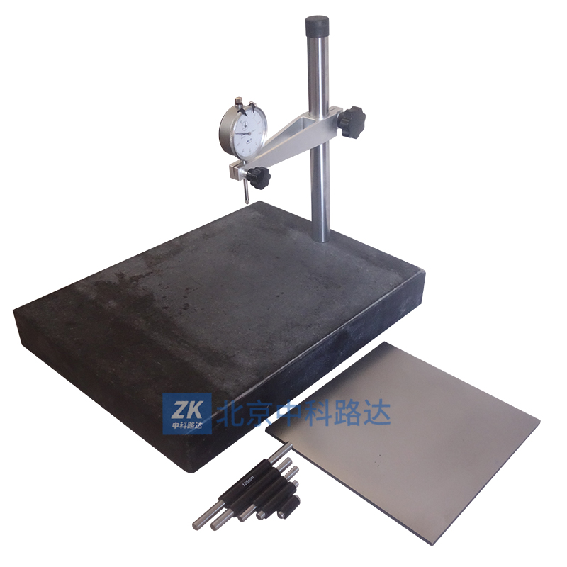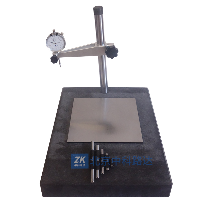 主要用于氣凝膠及其復(fù)合材料厚度等主要尺寸的測量,符合GB/T 34336-2017《納米孔氣凝膠復(fù)合絕熱制品》的要求規(guī)定。由大理石底座、可移動支架、立柱、百分表及金屬壓板組成 。