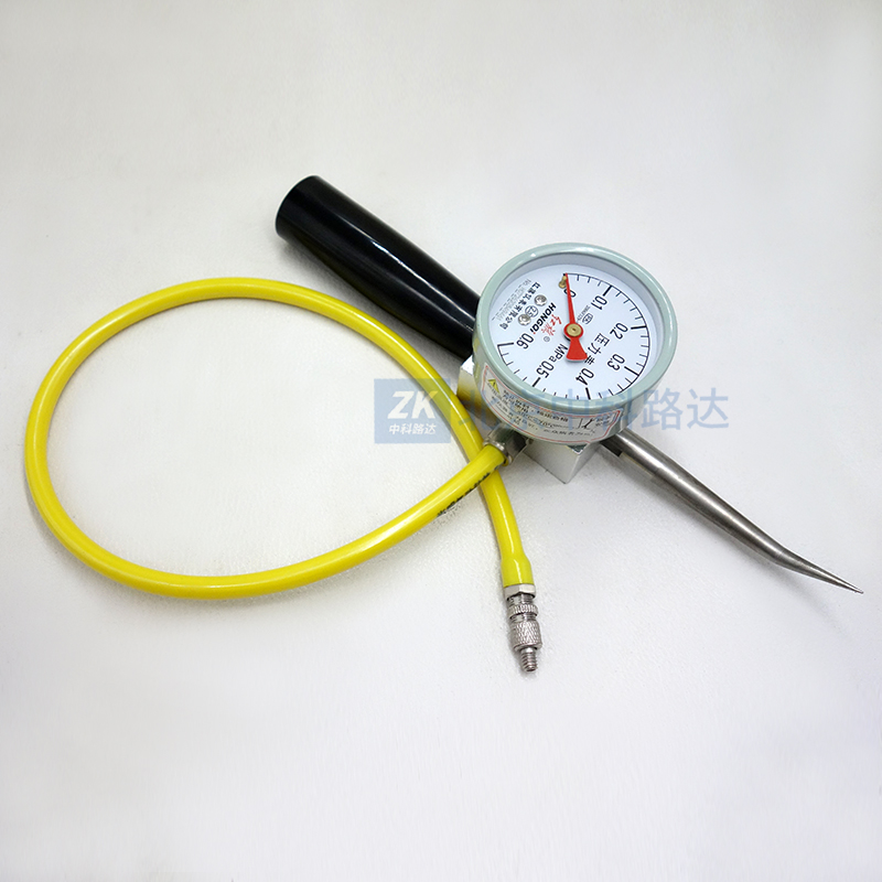 5、檢測之前可對測試針進行測定。方法是用手指壓住充氣針孔,不能有漏氣。對測試針充入一定壓力空氣,數分鐘后壓力表指針讀數不變則正常。