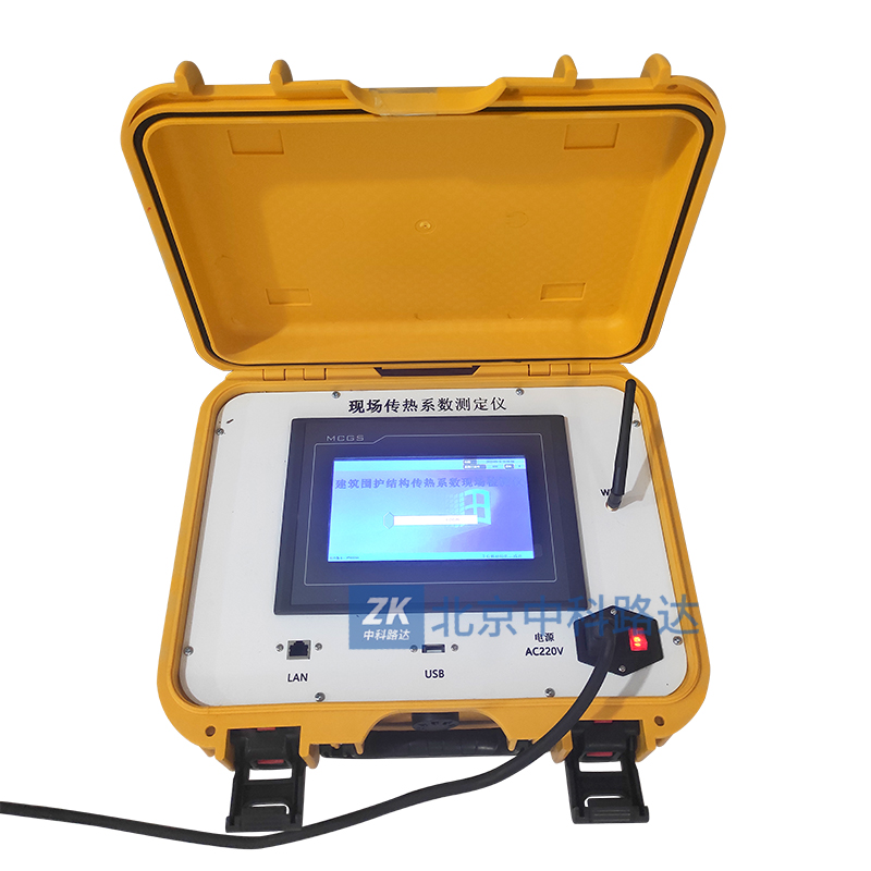 該儀器適用于建筑圍護結構傳熱系數現場檢測和實驗室檢測,以及溫度、熱流的高精度檢測。采用觸摸屏,結合wifi無線通訊技術與高精度采集模塊相結合,組成高精度、低功耗的新一代測試儀器。具有體積小、精度高、使用方便、功能齊全等特點。該儀器與熱箱配套使用,通過控制熱箱內溫度,在試件兩側形成溫差。可測量6路溫度(另加1根熱箱溫度監控)共7路溫度采集、3路熱流密度。