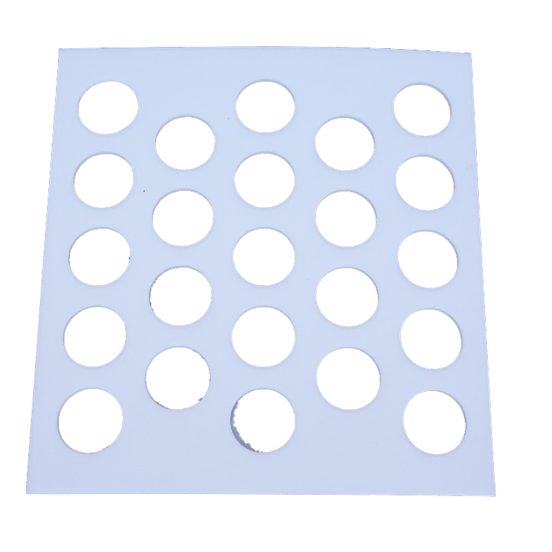 本模板用于陶瓷磚膠粘劑剪切粘結強度的測定。用聚四氟乙烯制作,用于D類膏狀乳液基膠粘劑和R類反應樹脂型膠劑,符合JC/T 547-2017《陶瓷磚膠粘劑》和GB/T 12954.1-2008《建筑膠粘劑試驗方法 第1部分:陶瓷磚膠粘劑試驗方法》的標準要求。