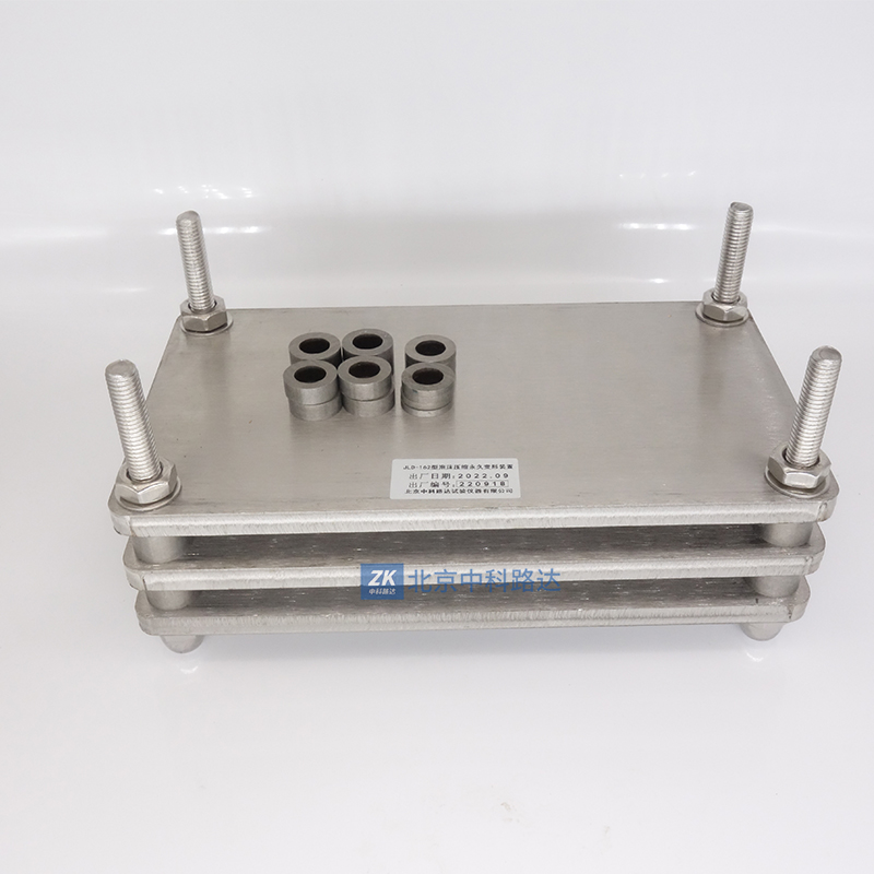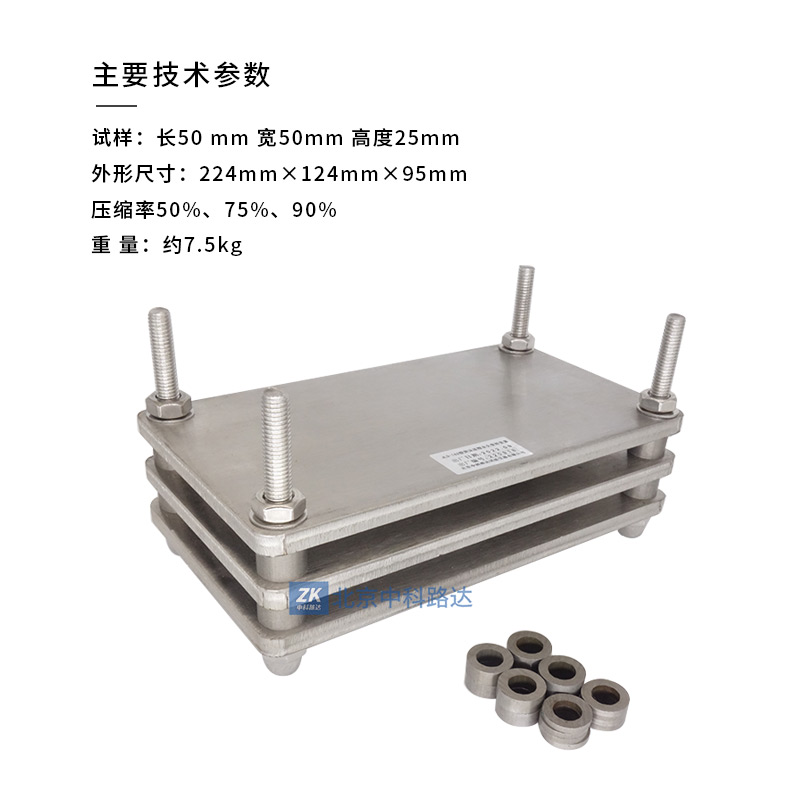 泡沫壓縮永久變形器由平行鋼板、限制器和緊固件組成,符合GB/T 6669-2008 ISO 1856:2000 《軟質(zhì)泡沫聚合材料壓縮永久變形的測(cè)定》的要求。在規(guī)定的溫度下,使泡沫材料試樣在一定的時(shí)間內(nèi)維持恒定的變形,待試樣恢復(fù)一段時(shí)間后,觀察形變對(duì)試驗(yàn)厚度的影響。用試樣的初始厚度與最終厚度之差與試樣初始厚度之比的百分率表示該材料的壓縮永久變形。