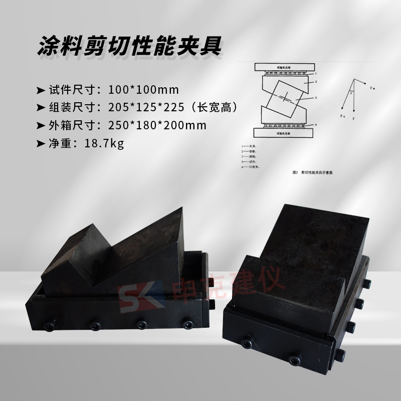 用于道橋用改性瀝青防水卷材和道橋用防水涂料的剪切強度試驗,符合JC/T 974-2005 《道橋用改性瀝青防水卷材》JC/T 975-2005 《道橋用防水涂料》標準要求。