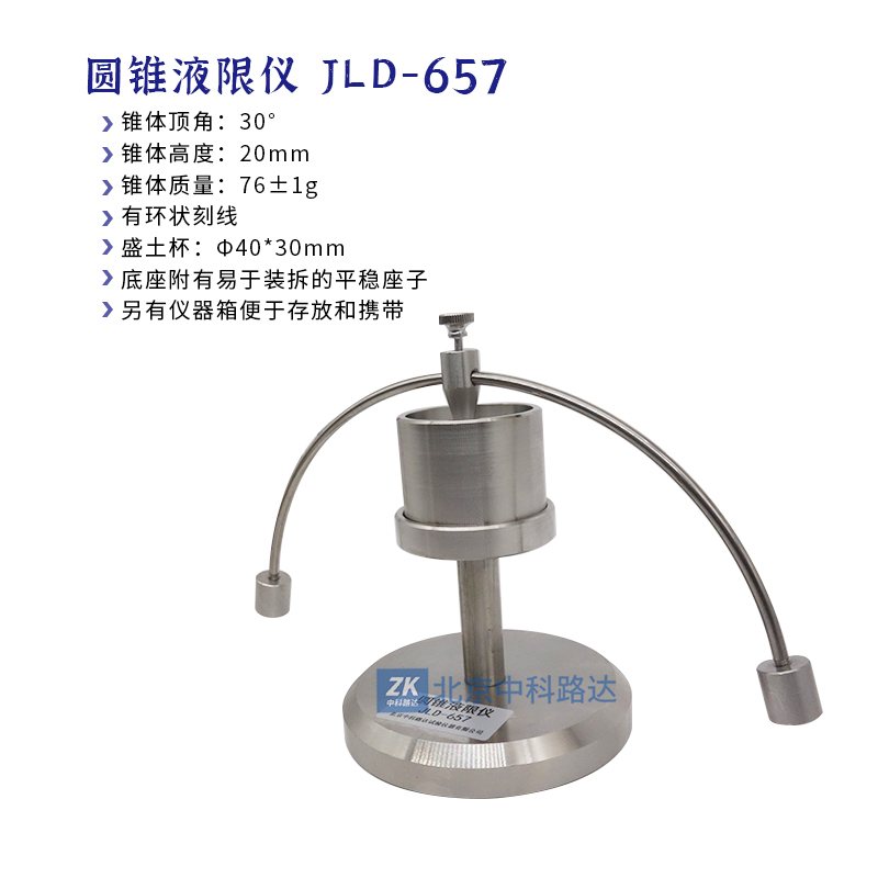 用于測定土的液限,采用圓錐儀法,符合TB10102-2023《鐵路工程土工試驗規(guī)程》,TB/T2140.2-2018《鐵路碎石道砟第2部分:試驗方法》,GB/T 50123-2019《土工試驗方法標準 》,JTG3430-2020《公路土工試驗規(guī)程》的標準要求。
