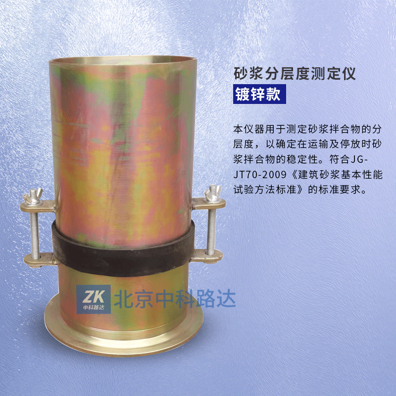 本儀器用于測定砂漿拌合物的分層度,以確定在運輸及停放時砂漿拌合物的穩定性。符合JGJT70-2009《建筑砂漿基本性能試驗方法標準》的標準要求。