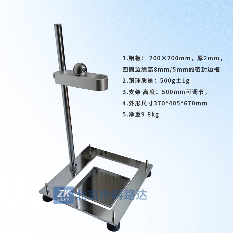 本儀器用于測定瀝青或改性瀝青與集料的低溫黏結性能,以規定條件下試驗板受沖擊后碎石被振落的百分率表示。符合JTG E20-2011《公路工程瀝青及瀝青混合料試驗規程》中 T0660瀝青與集料的低溫黏結性試驗的標準要求。