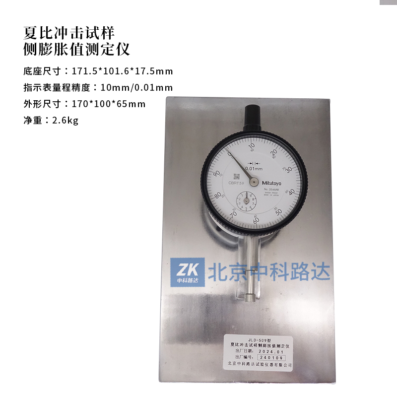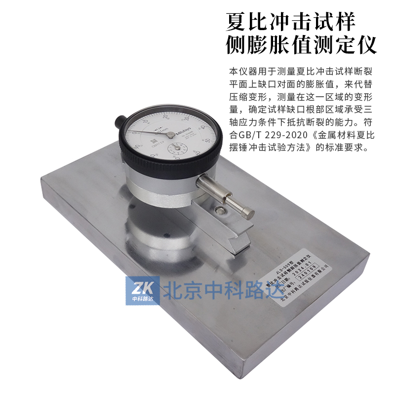 本儀器用于測量夏比沖擊試樣斷裂平面上缺口對面的膨脹值,來代替壓縮變形,測量在這一區域的變形量,確定試樣缺口根部區域承受三軸應力條件下抵抗斷裂的能力。符合GB/T 229-2020《金屬材料夏比擺錘沖擊試驗方法》的標準要求。