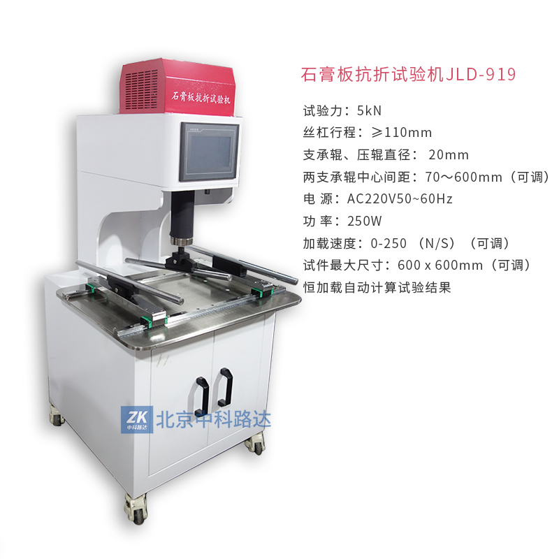 石膏板抗折試驗機是用來測定石膏板、裝飾板等非金屬材料薄板抗折強度的試驗設備。符合GB/T9775-2008 《紙面石膏板》、JC∕T 799-2016 《裝飾石膏》、JC/T 997-2006 《裝飾紙面石膏板》等標準要求。采用7寸嵌入式觸摸屏,具有實時力值、峰值;設定試驗次數、加荷速度;顯示力值曲線,保存數據記錄; 試驗結果打印、U盤數據導出等功能。
