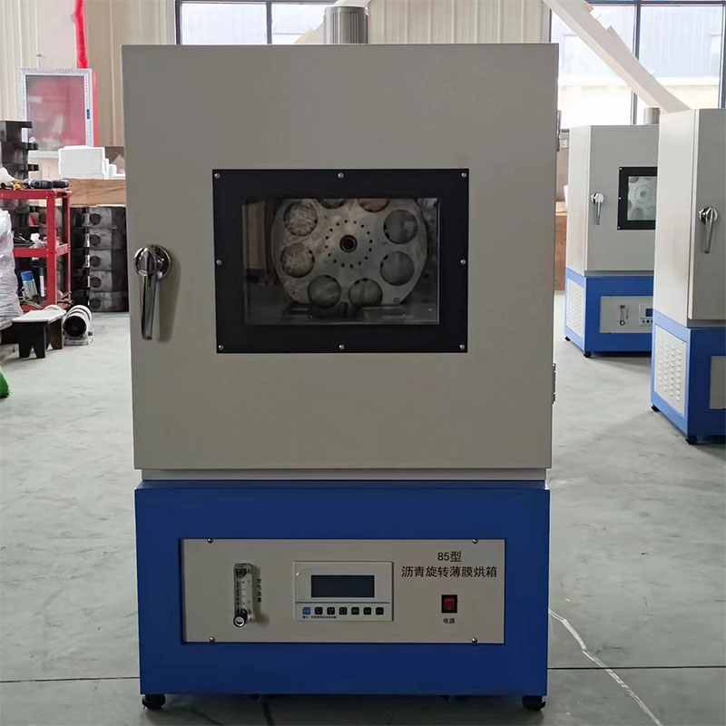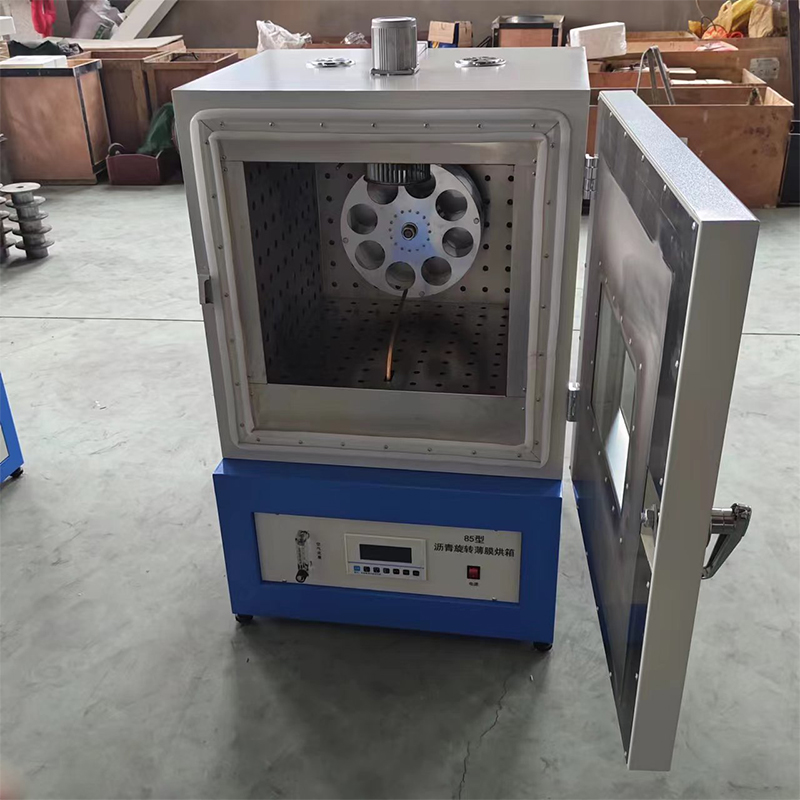 本產品適用于測定道路石油瀝青,旋轉薄膜烘箱加熱(簡稱RTFOT)對粘稠瀝青的影響,加熱后的質量損失,并根據需要測定旋轉薄膜加熱后瀝青殘留物的針入度、粘度、延度及脆點等性質的變化,以評定瀝青的老化性能,其根據TB/T5502—91《干燥箱技術條件》和T0609—93、T0610—93生產。
