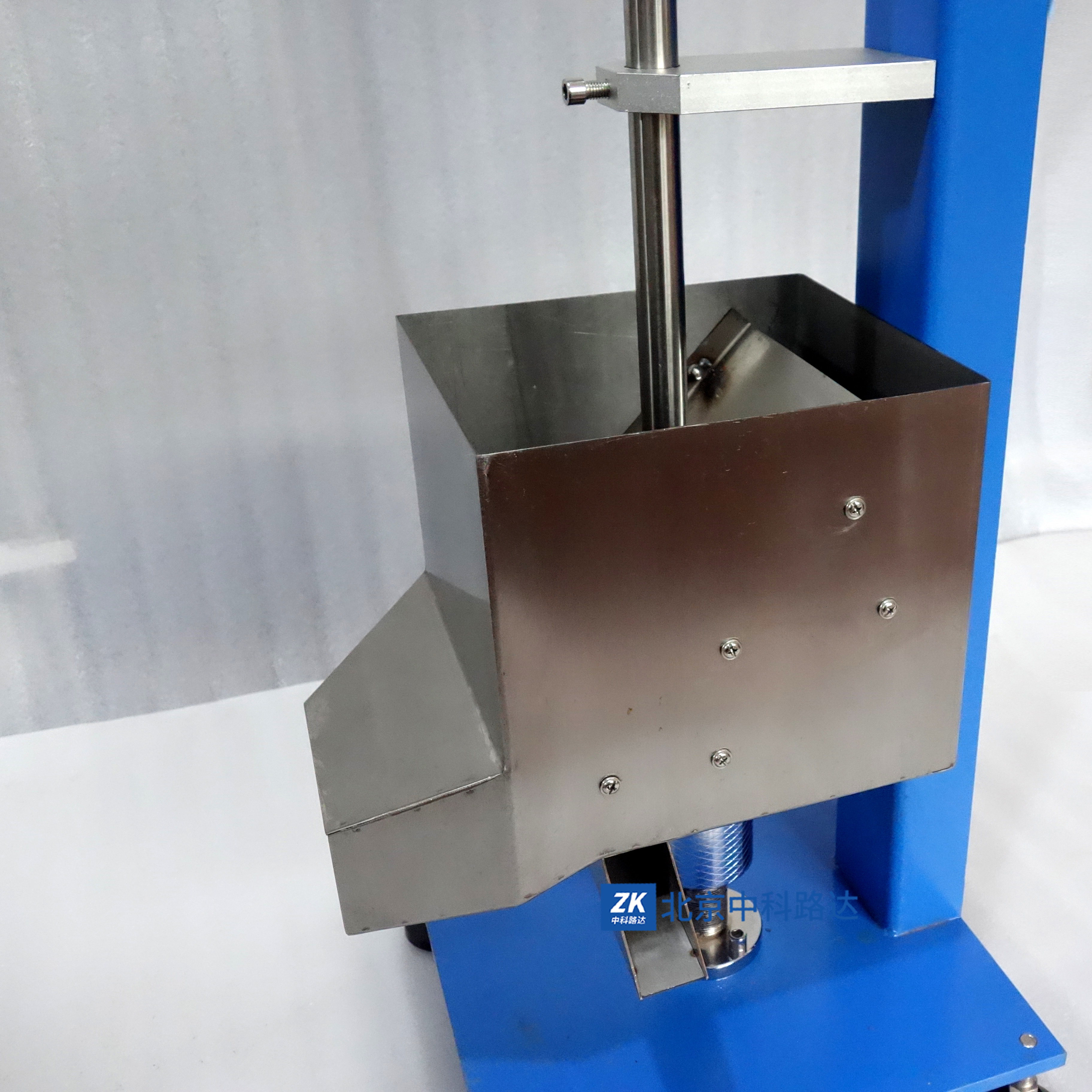 落砂耐磨試驗機用來測試標準條件下有機涂層(諸如鋁塑復合板或金屬漆,汽車漆等)的耐磨性。讓一定大小的砂粒通過導管從規定的高度落到試驗樣板上,直至磨到露出基材為止,稱取將漆膜破壞所需要的砂量,以單位涂層厚度所用的標準砂量來評定該漆膜的耐磨性。按照GB/T 23988-2009《涂料耐磨性測定 落砂法》及ASTM D 968 制造,精密控制每一個零部件的尺寸偏差,且主要零部件均采用高級耐磨不銹鋼制造。