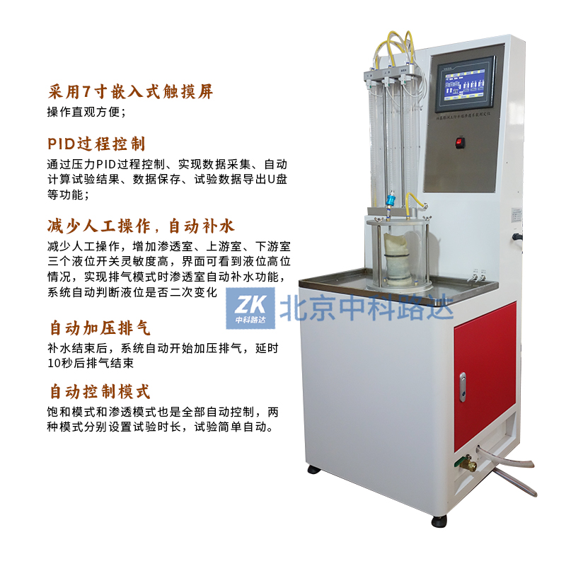 5、飽和模式和滲透模式也是全部自動控制,兩種模式分別設置試驗時長,試驗簡單自動。