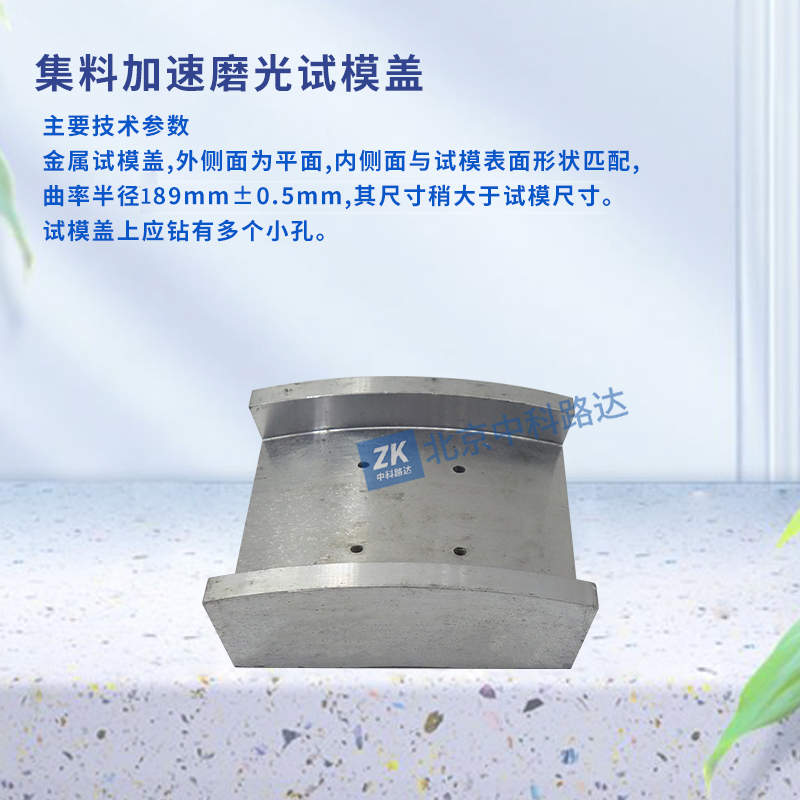 6、試模蓋:金屬試模蓋,外側面為平面,內側面與試模表面形狀匹配,曲率半徑189mm±0.5mm,其尺寸稍大于試模尺寸。試模蓋上應鉆有多個小孔。