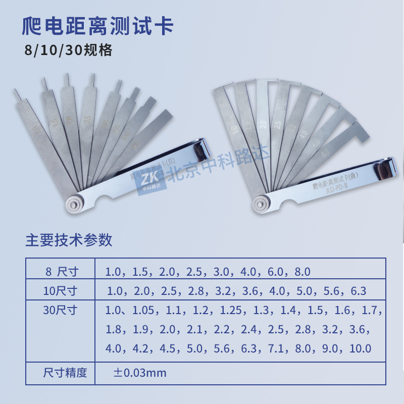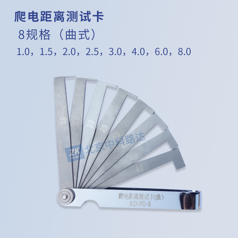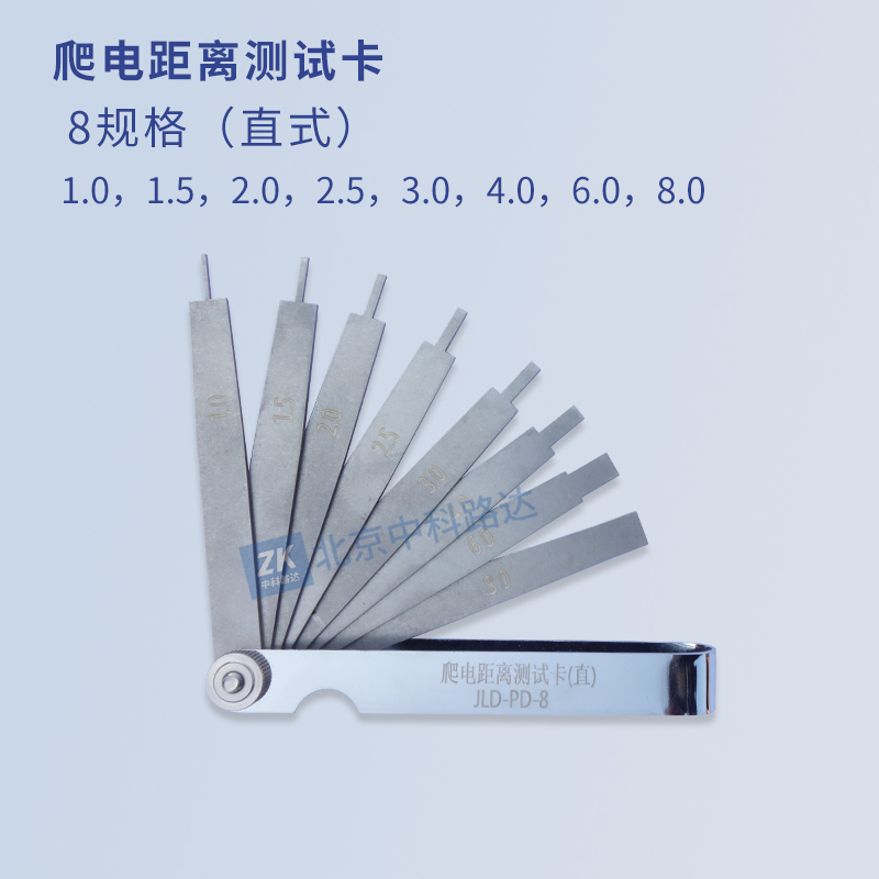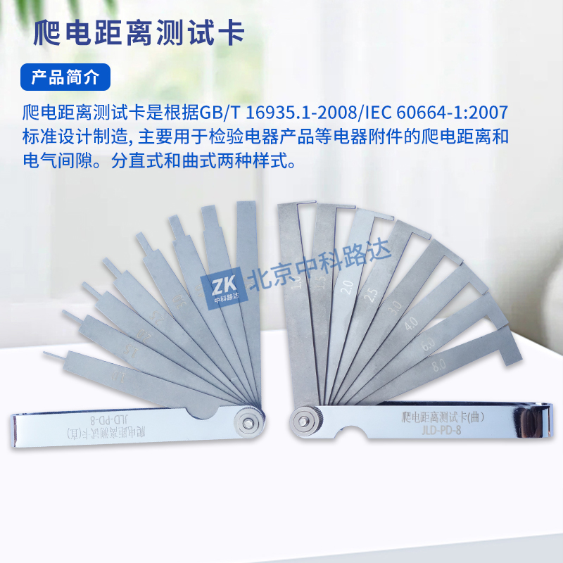 爬電距離測試卡是根據GB/T 16935.1-2008/IEC 60664-1:2007標準設計制造, 主要用于檢驗電器產品等電器附件的爬電距離和電氣間隙。分直式和曲式兩種樣式。