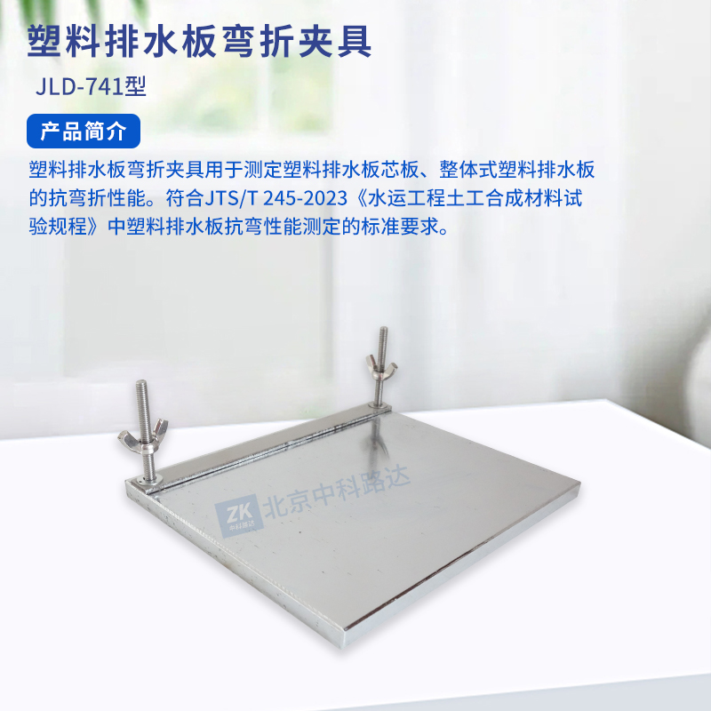 塑料排水板彎折夾具用于測定塑料排水板芯板、整體式塑料排水板的抗彎折性能。符合JTS/T 245-2023《水運工程土工合成材料試驗規(guī)程》中塑料排水板抗彎性能測定的標準要求。