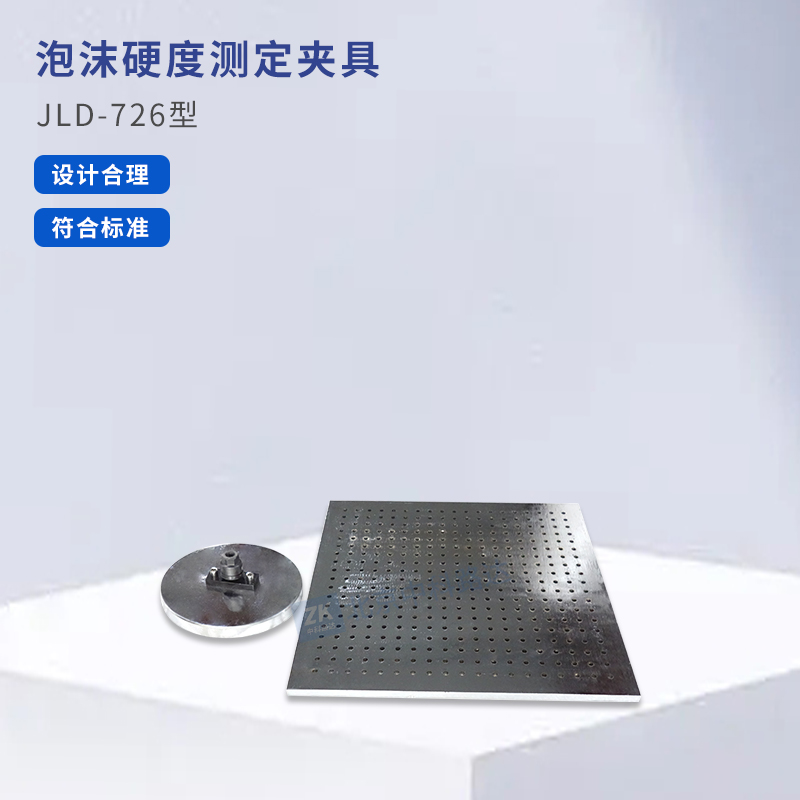 泡沫硬度測定夾具用于測定軟質泡沫聚合材料壓陷硬度,由支撐板和壓頭組成。符合GB/T 10807-2006《軟質泡沫聚合材料硬度的測定(壓陷法)》的標準要求。