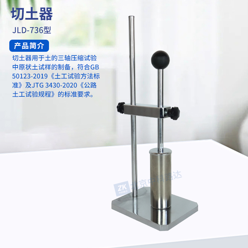 切土器用于土的三軸壓縮試驗中原狀土試樣的制備,符合GB 50123-2019《土工試驗方法標準》及JTG 3430-2020《公路土工試驗規程》的標準要求。