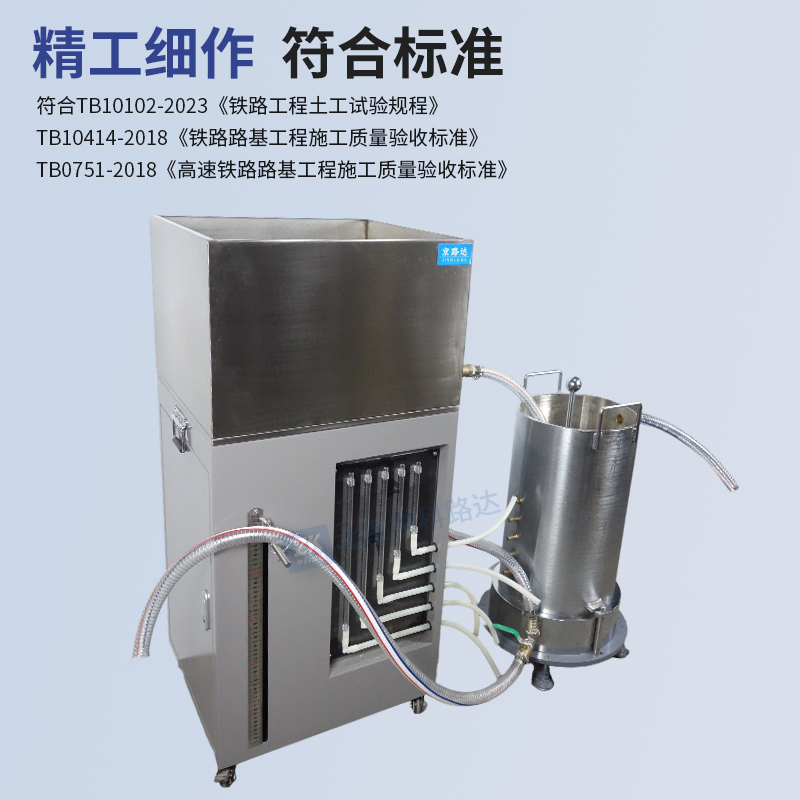 粗粒土常水頭滲透儀用于測定土的滲透系數(shù),用于最大粒徑不大于75mm的粗粒土和級配碎石。符合TB10102-2023《鐵路工程土工試驗規(guī)程》、TB10414-2018《鐵路路基工程施工質(zhì)量驗收標準》和TB0751-2018《高速鐵路路基工程施工質(zhì)量驗收標準》的標準要求。